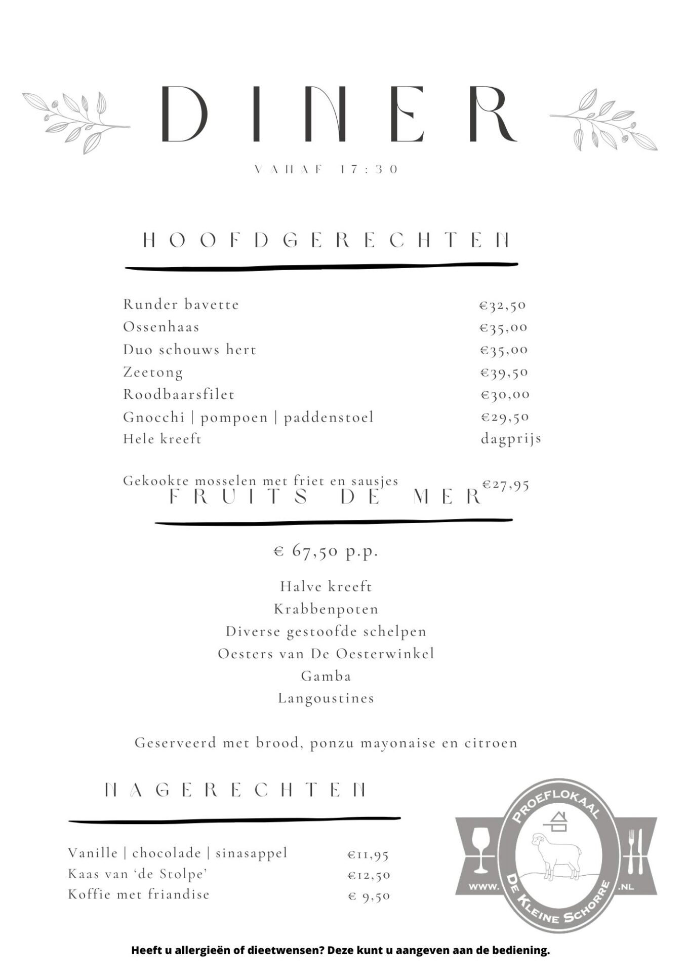 • Menukaart